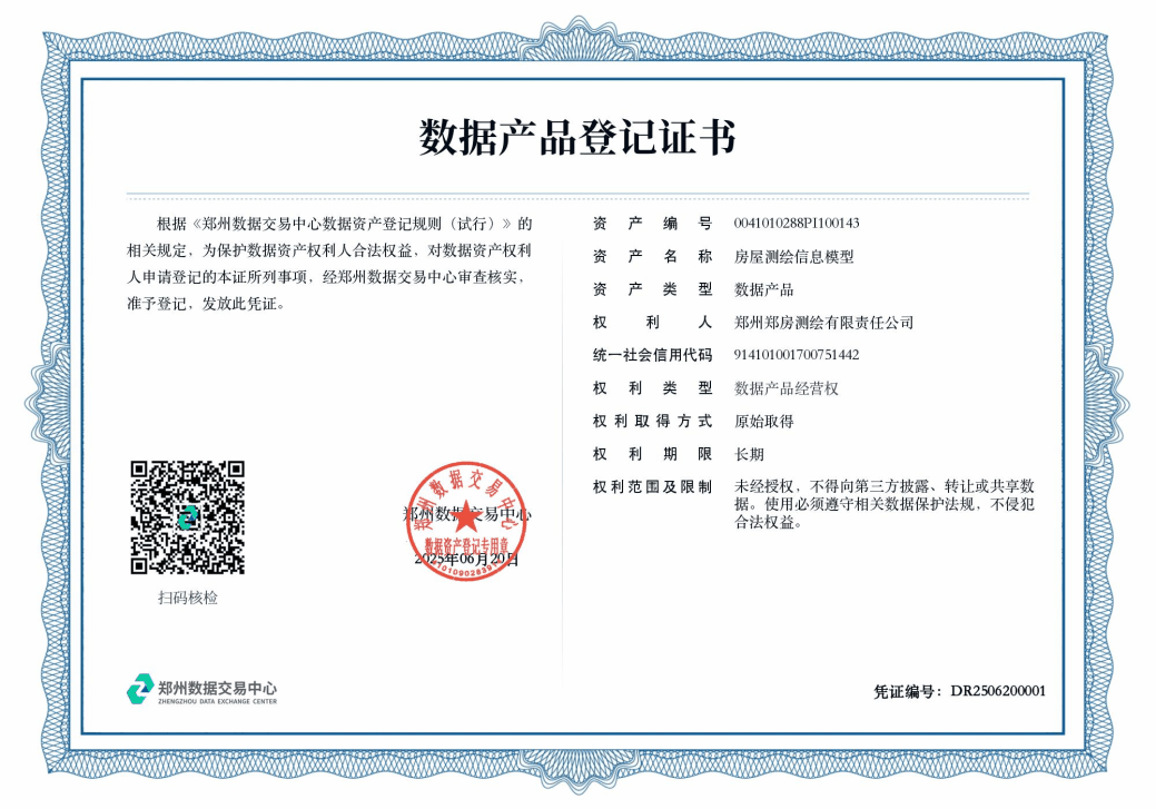 鄭州鄭房測繪有限責任公司獲評“高新技術(shù)企業(yè)”,榮獲“河南省地理信息企業(yè)20強”稱號,取得《數(shù)據(jù)產(chǎn)品登記證書》,為城市更新與管理提供專業(yè)數(shù)據(jù)服務(wù)。極地冰雪探測關(guān)鍵技術(shù)及應(yīng)用和房地一體化測繪系統(tǒng)平臺關(guān)鍵技術(shù)與應(yīng)用研究分別獲得河南省測繪科學(xué)技術(shù)獎特等獎和二等獎。2025年,申報的三個測繪項目,分別榮獲“2025年度優(yōu)秀測繪工程獎”金獎、銀獎與銅獎。